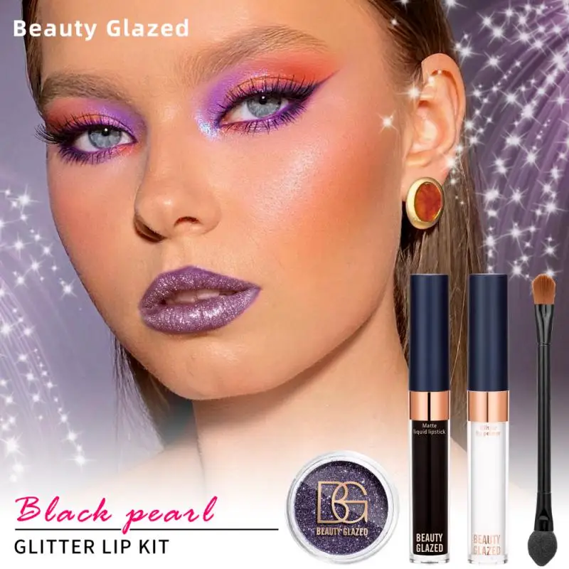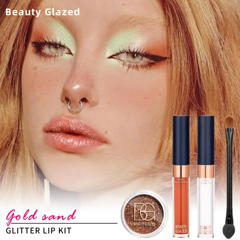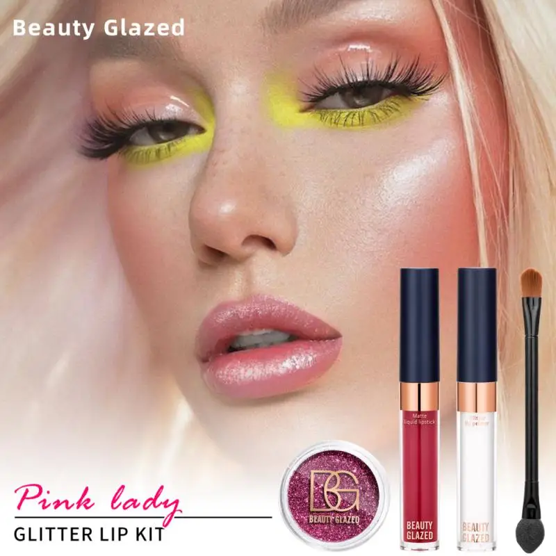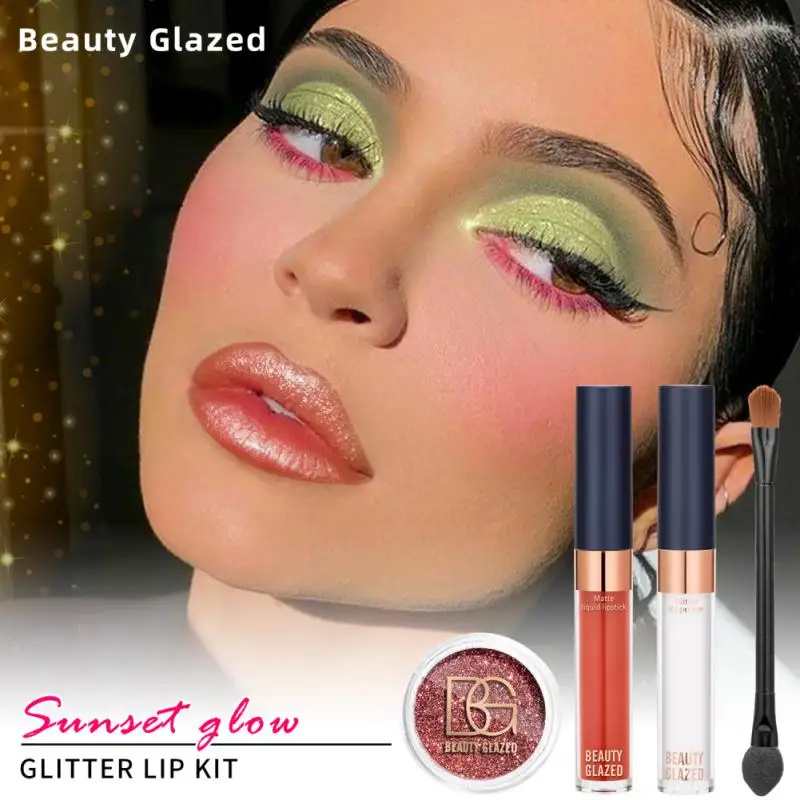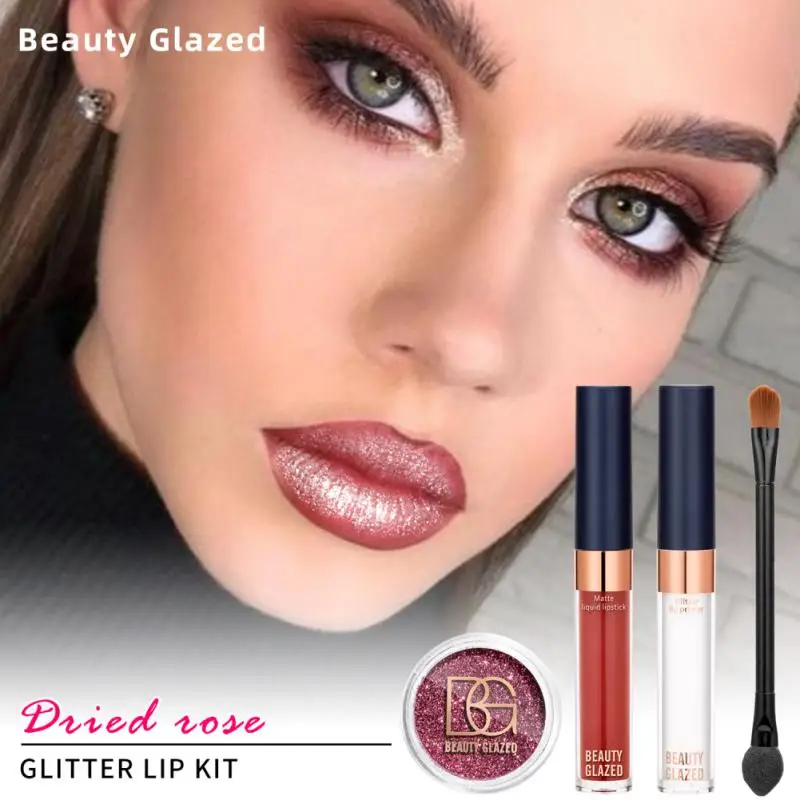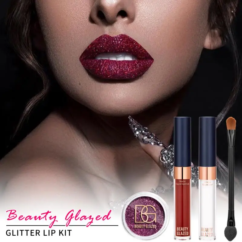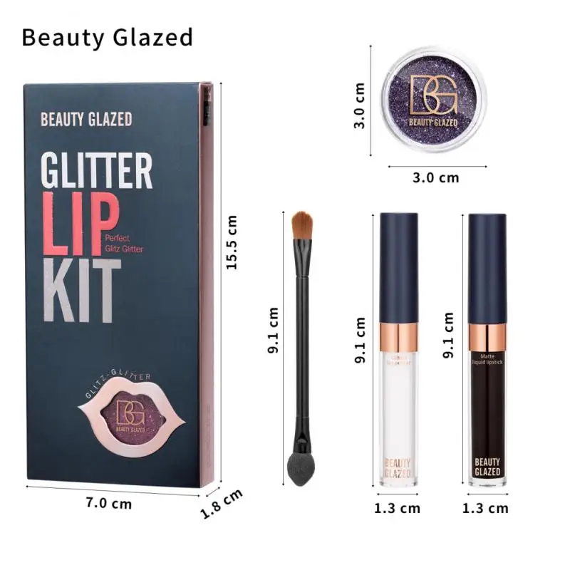 Glitter Lip Gloss Set: You can use the glitter lip gloss to create perfect shiny lips. The package of the lip set includes lip gloss primer, brilliant glitter and applicator brush.